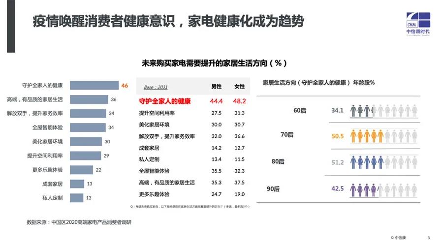 白皮书显示2020年智能家电市场规模达2727亿元,占整个家电比重的43%,智能化成为选购小家电的重要参考因素。而在购买家电时,46%的消费者倾向选择“守护全家人健康”的小家电产品,新需求进一步激发了消费者的家电换新热情。